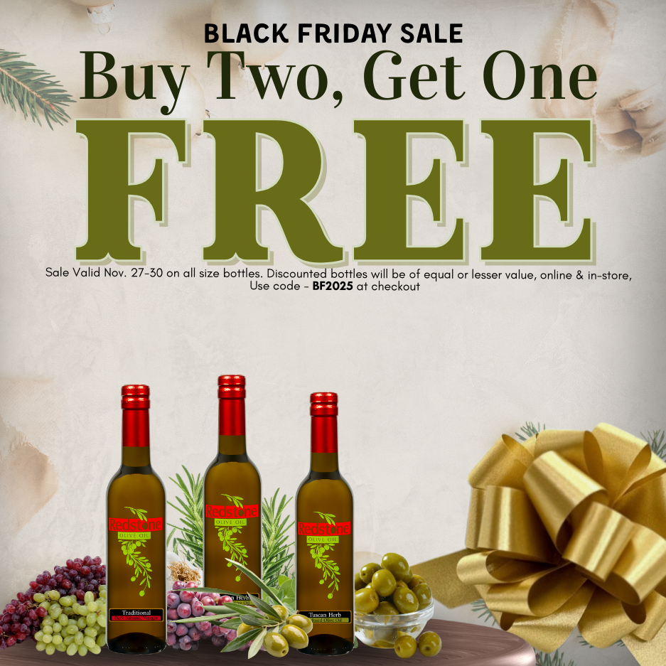 Our collection of pure olive oils and balsamic vinegars is truly one of a kind. With over 50 unique varieties—including customer favorites like Tuscan Herb, Chipotle, and Cranberry Pear Balsamic Vinegar, as well as rich balsamics like Dark Chocolate Balsamic Vinegar and Sicilian Lemon—Redstone Olive Oil is your go-to destination for flavor and creativity in the kitchen.