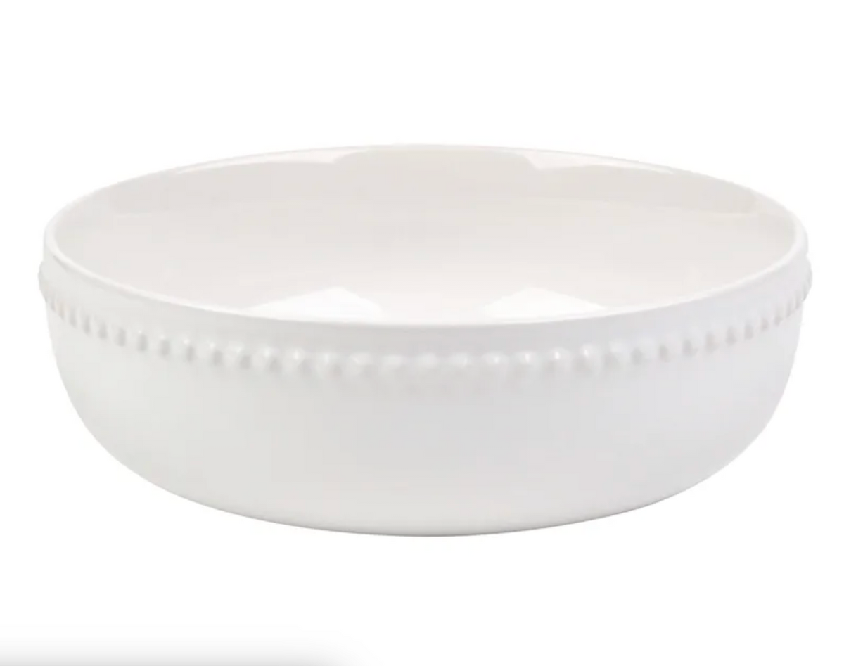 Elevate your dining experience with the Large White Beaded Stoneware Serving Bowl. Crafted from durable stoneware and finished in a sleek white glaze, this bowl features elegant beaded detailing that adds timeless charm to any table setting.