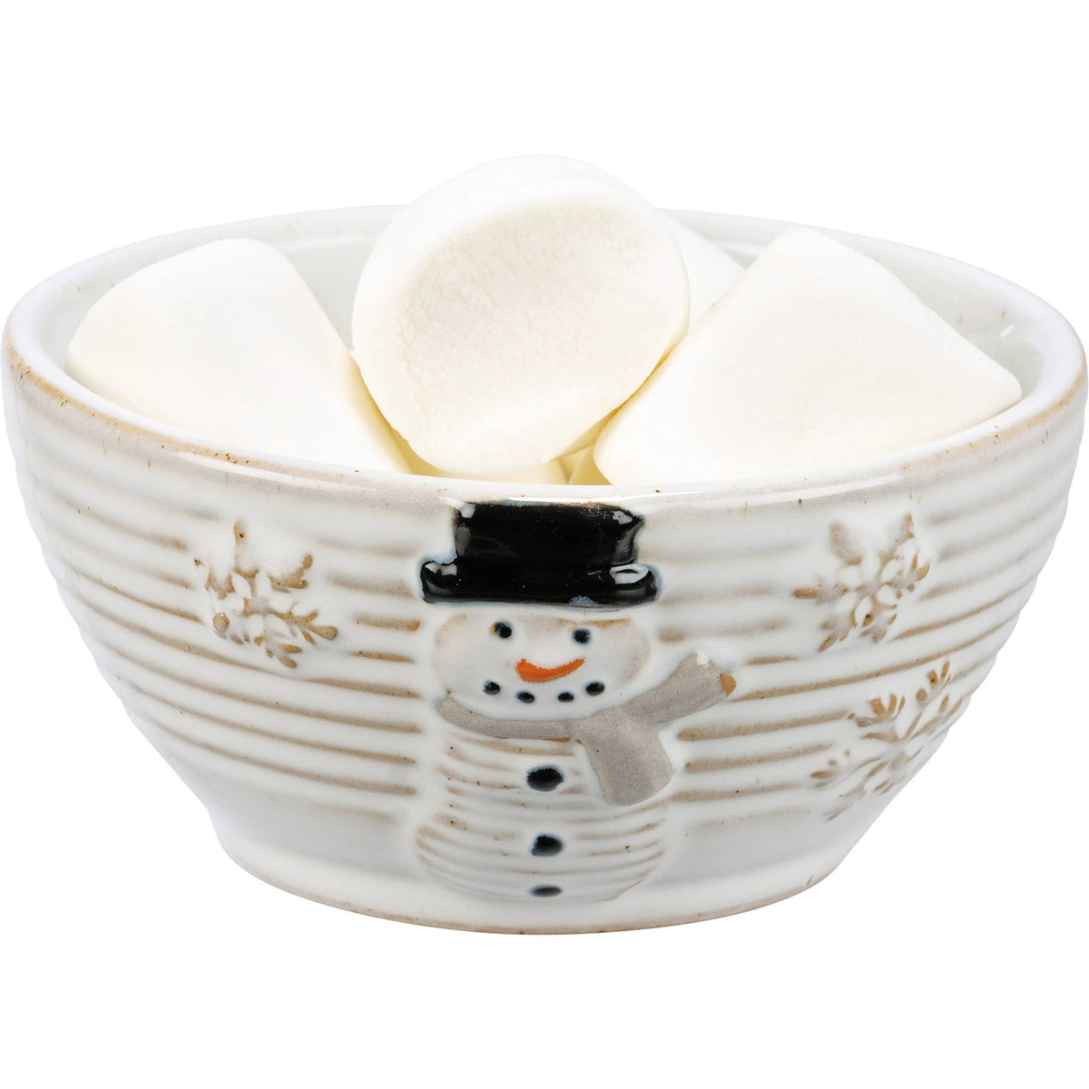 Bring holiday charm to your table with our ceramic Snowman Bowl from the Christmas Collection. Made with durable stoneware, it features an embossed snowman and snowflakes design, accented with color details and a snowy white brushed glaze for a handmade, rustic look.