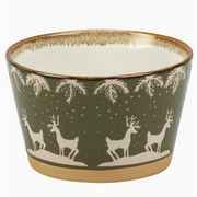 Bring a touch of vintage charm to your holiday celebrations with our White Deer ceramic bowl. Featuring a winter scene of deer in the snow, this festive piece is detailed with debossed accents and a smooth glaze finish. Perfect as seasonal tableware or a decorative accent for your home. Hand wash only; not microwave safe. A timeless piece of Christmas tableware, ideal for holiday gatherings.